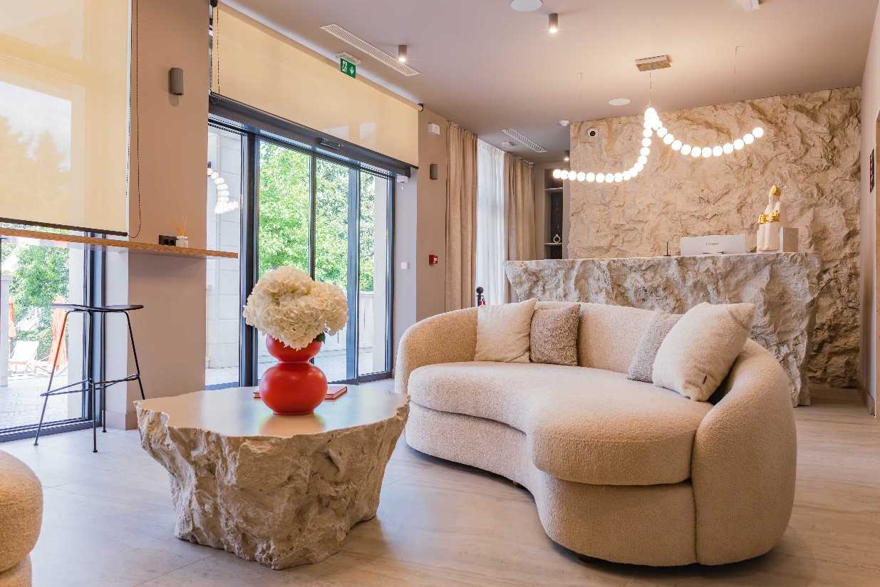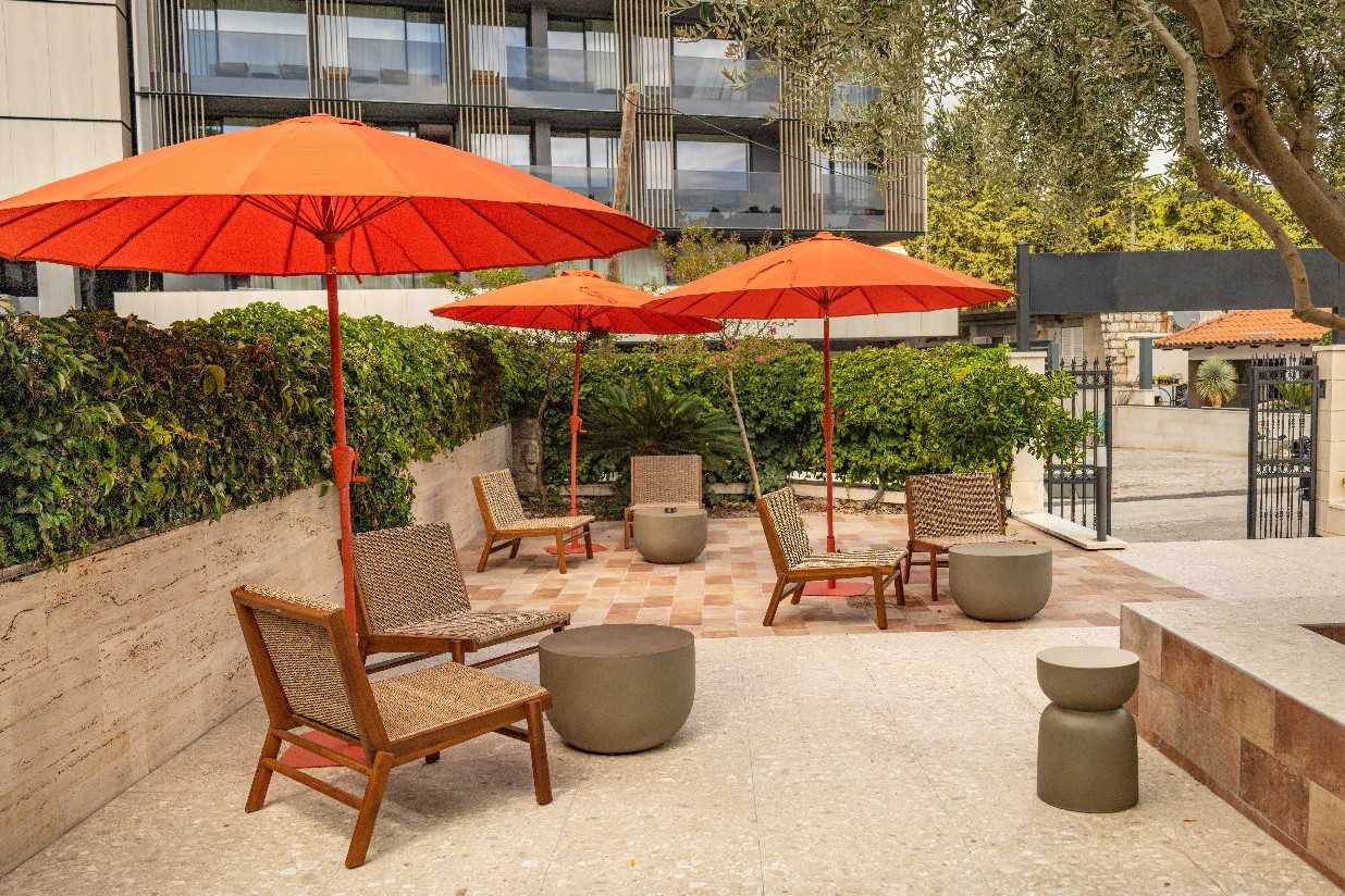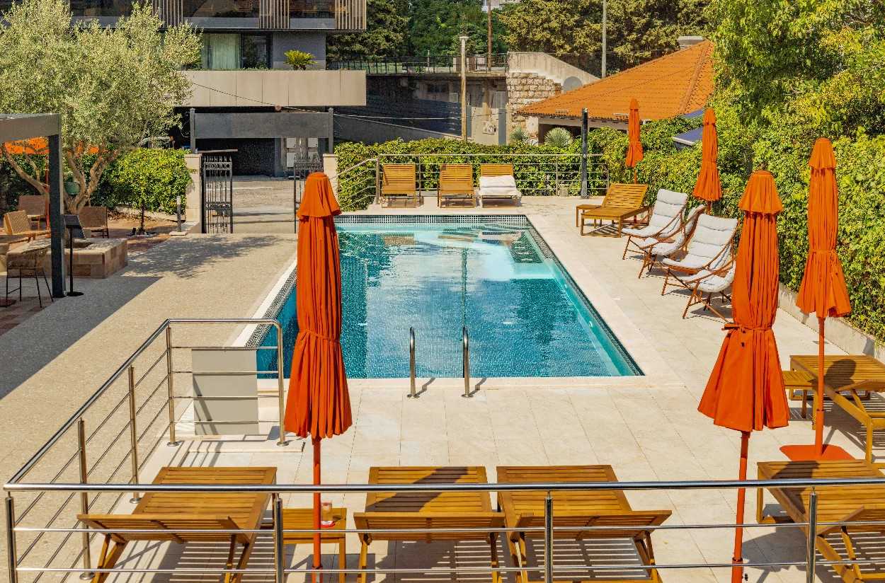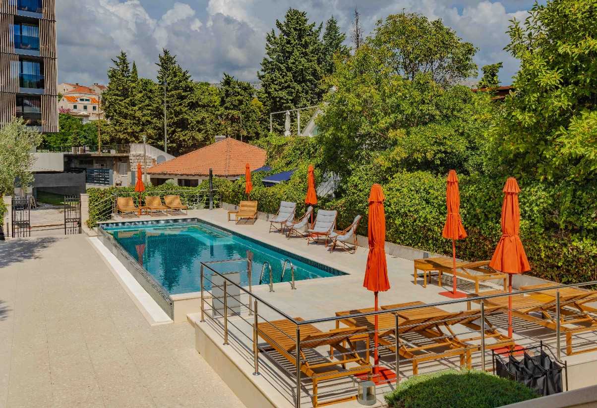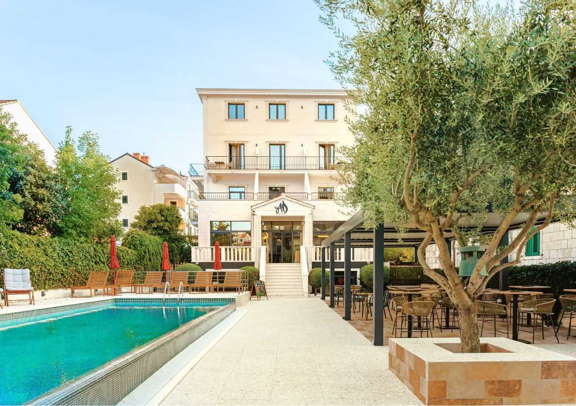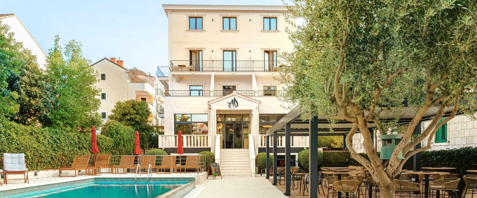 Following a vast reconstruction and renovation lasting 18 months the hotel reopened in August 2025 with a brand-new interior design and a four-star categorisation. Approaching the hotel, it still looks like the grand family residence which it once was. Now with just with 20 rooms and still owned by a Croatian family, the hotel stands at the end of a beautiful garden housing the outdoor pool and outdoor terrace with trees and shrubs surrounding.