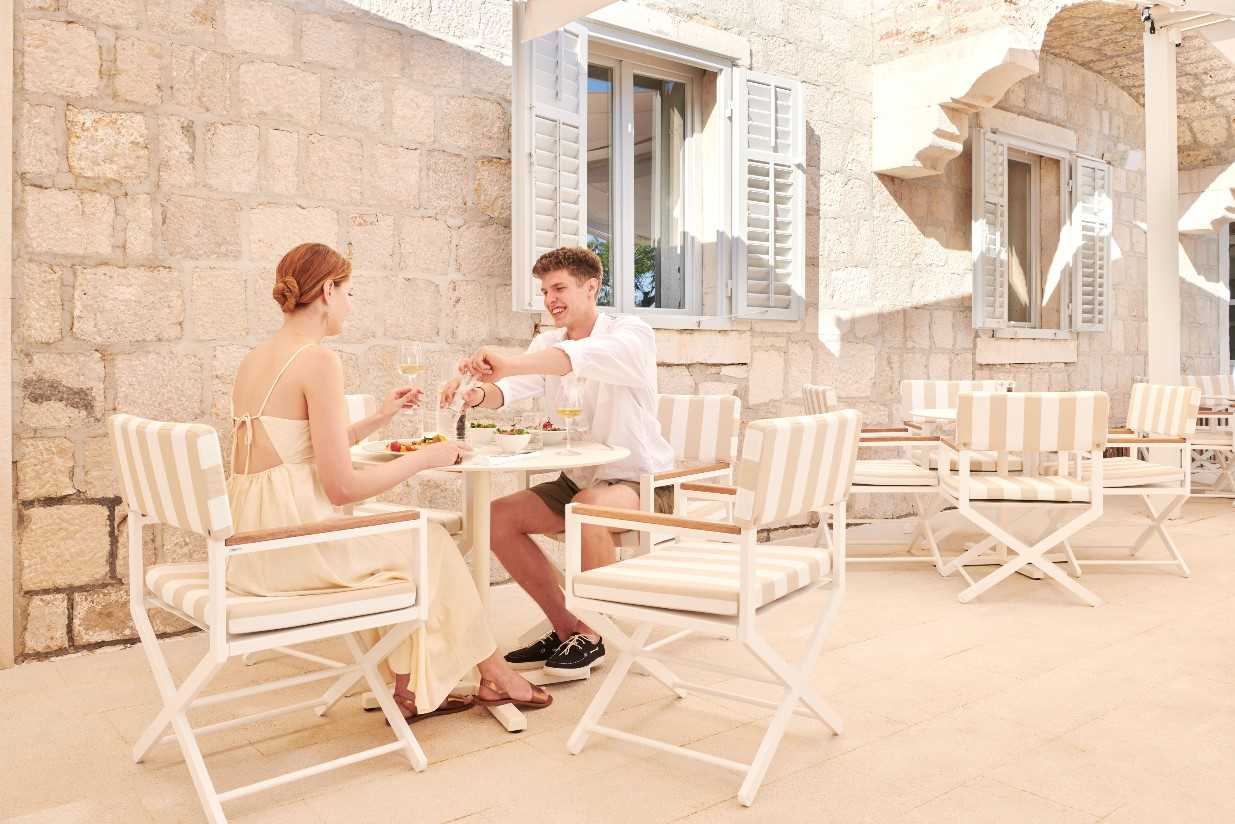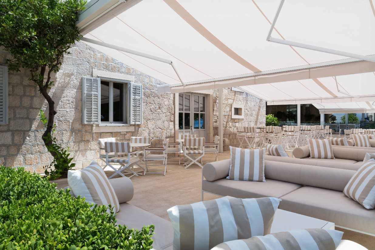 Built of traditional white Dalmatian stone, this features throughout, in original preserved arches, in rooms and in the beautiful inner square courtyard with its water fountain, olive trees and seating areas.