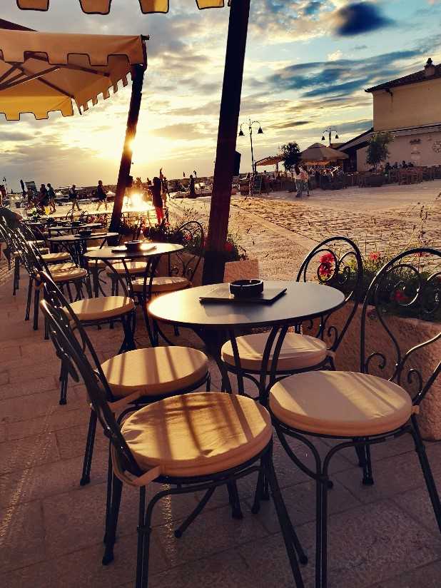 There is a lovely indoor space by Bar Barchetta, a bar in wood, shaped like a boat, the kind used by fishermen of Fazana and also a pretty outside terrace facing the fishing port and church, for breakfast, morning coffee and drinks.