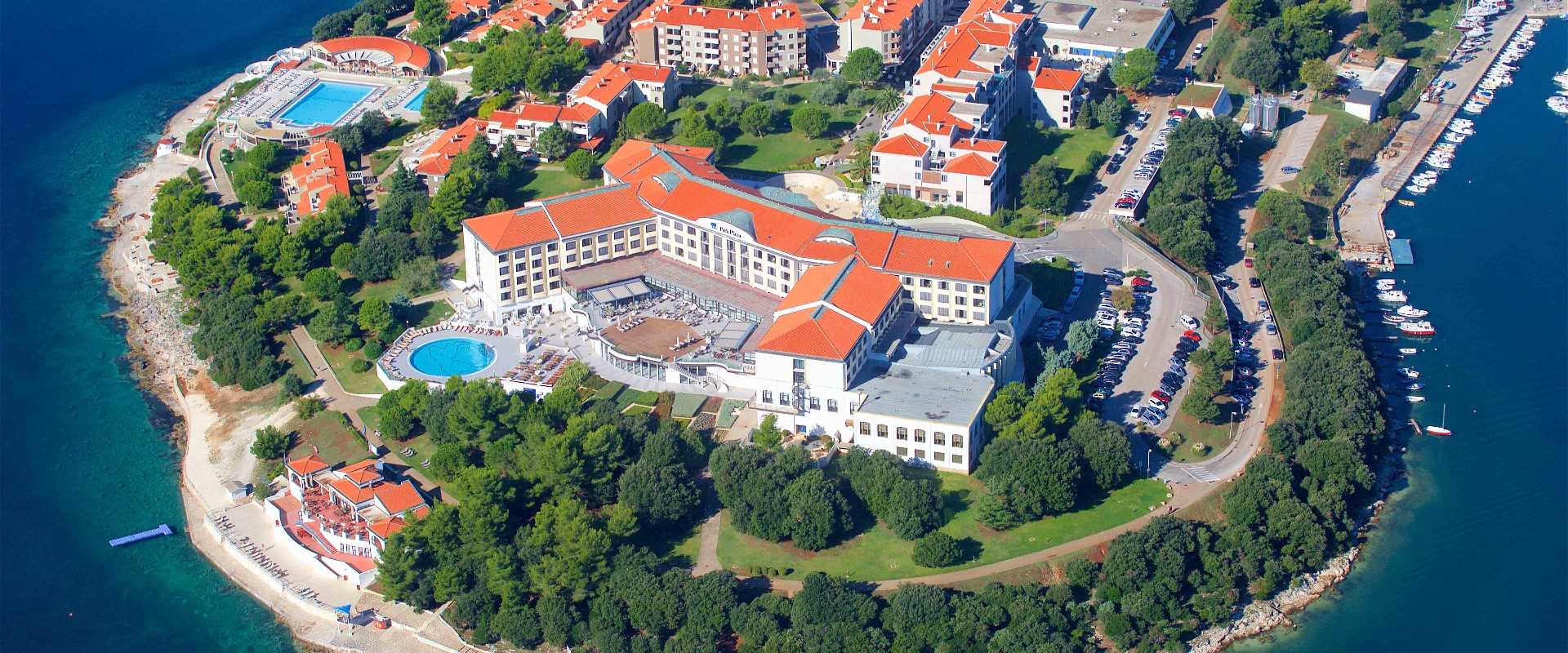 It is located on the green Verudela peninsula just 15 minutes by bus from central Pula and set in beautiful Mediterranean gardens with lots of space. It is right by the sea, with sea actually on three sides of the building and there is a direct path to the seaside promenade and the beach – no cars. The scent of pine hangs in the air here.