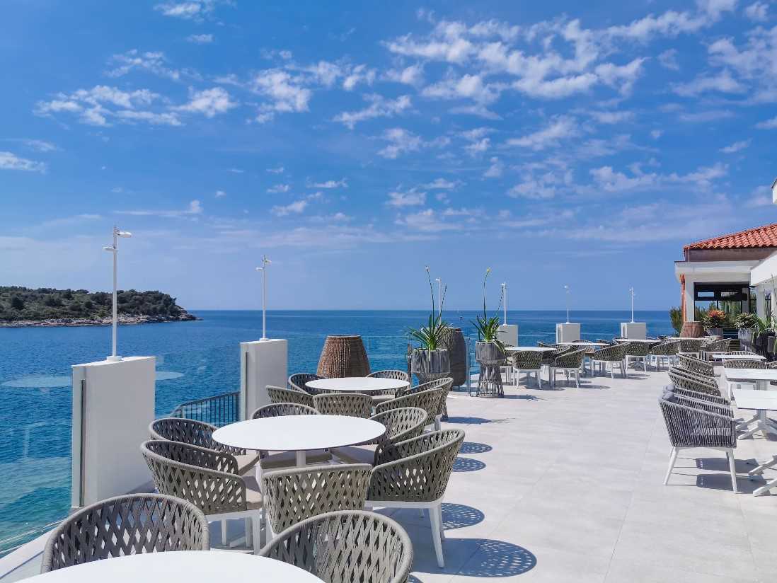 - Yacht seafront a la carte restaurant is probably our favourite spot. Open for lunch and dinner, usually from early May until mid-October (weather dependent), it is located in a semi-circular space fronted by see through, perspex walls offering fantastic views. Dishes include homemade pasta and seafood including seasonal specialities.
