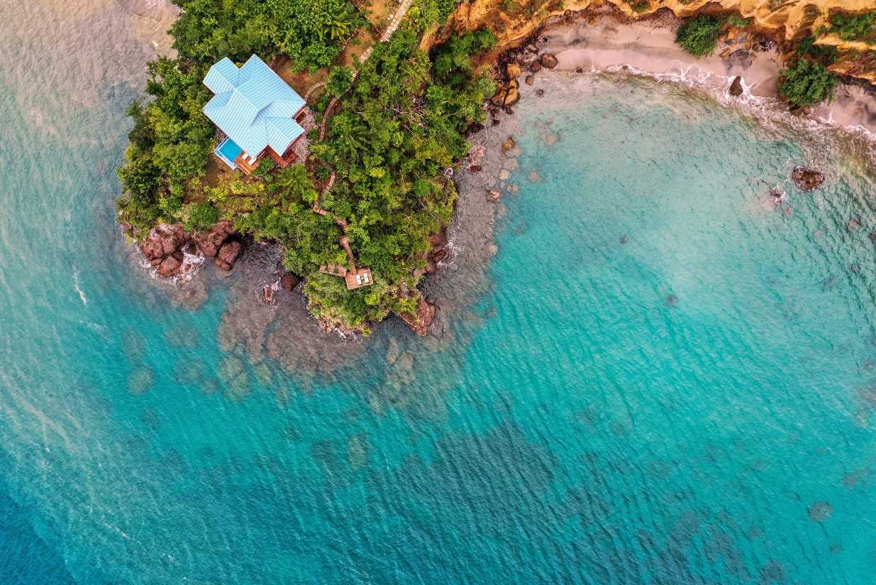 1.5 or 2.5 bed, 2 or 3 bath, perched on a lush hillside with jungle-to-ocean views, and others jungle views (Up to 2,799 total indoor/outdoor sq ft). Ultra-luxe and private, Secret Bay’s Ti-Fèy Villas and extended floor plan Ti-Fèy+ Villas are fashionable treehouses boasting floor-to-ceiling glass walls and a two- or three-story design, with a private plunge pool, outdoor rain shower cantilevered off the top floor, one and a half or two and a half-bedrooms and an extra bathroom, gourmet kitchen and every modern amenity imaginable to complete your idyllic under-the-radar hideaway.