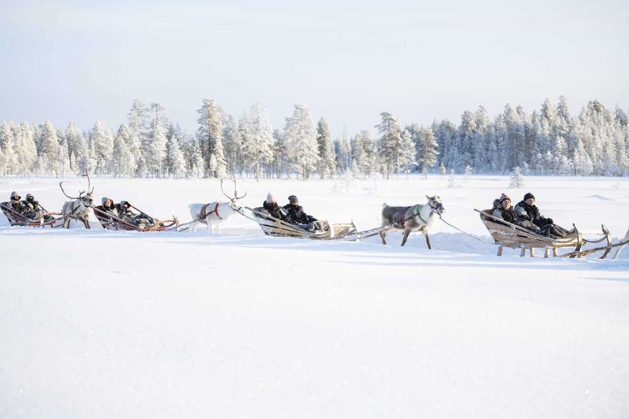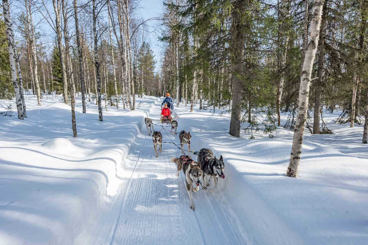 The hotel is located at the base of the Syote ski slopes, offering a convenient ski-in, ski-out position in one of Finland’s most snow-sure regions. Syote has 17 slopes, with runs of up to 1km, and consistently good snow conditions. The chairlift can also be used for sightseeing, rewarding non-skiers with expansive views across the surrounding forests and frozen lakes.