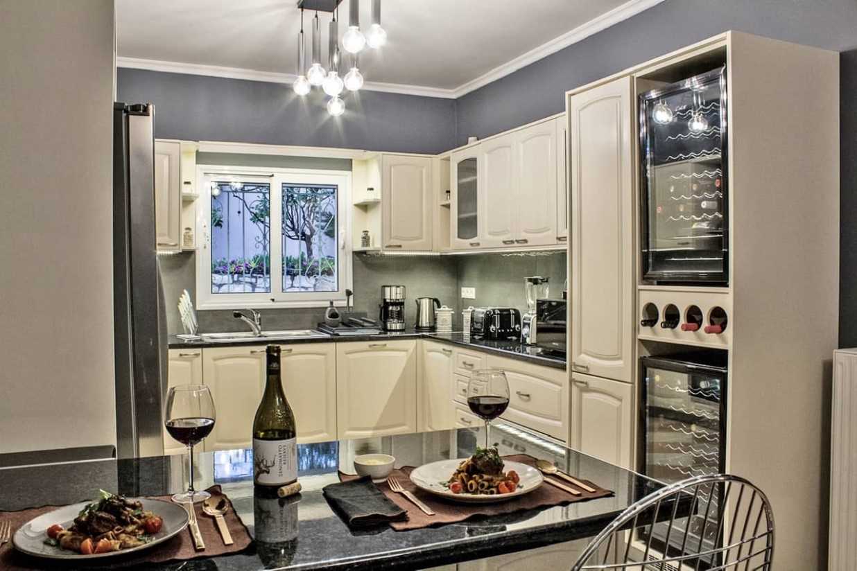 Villa Athina has been thoughtfully designed to combine a sense of space with a natural flow for shared living. The elegant al fresco dining area and stone-built barbecue are particularly appealing, setting the scene for long, leisurely meals. Indoors, the light-filled lounge, dining area and playroom offer comfortable communal spaces, ideal for families or groups of friends.