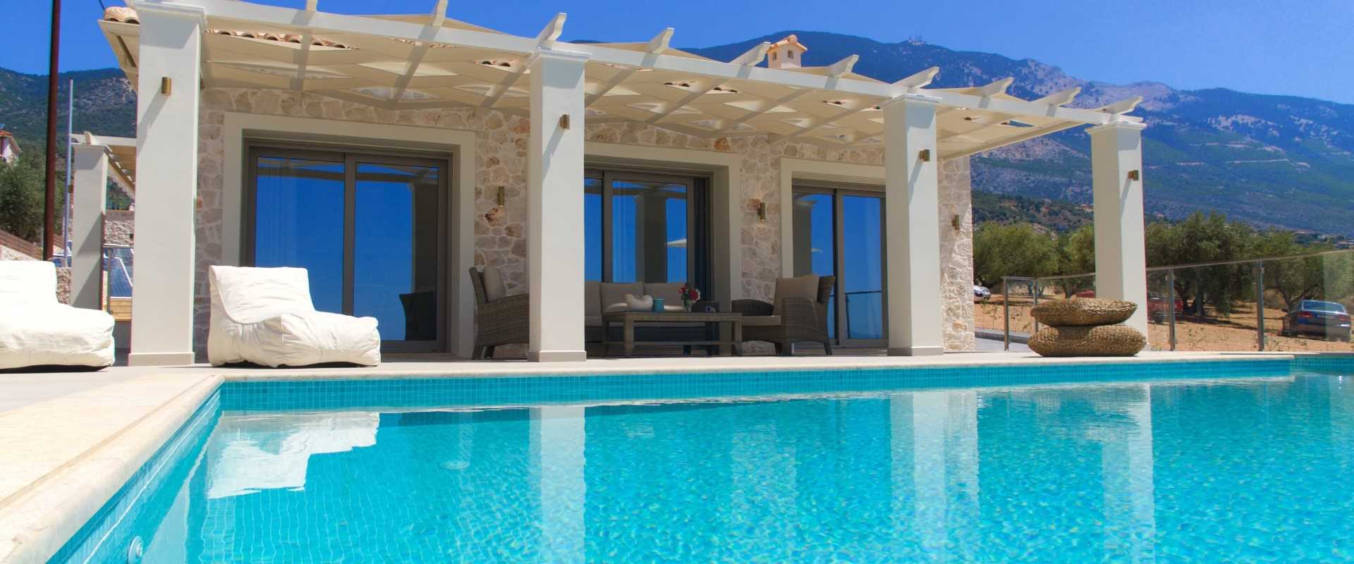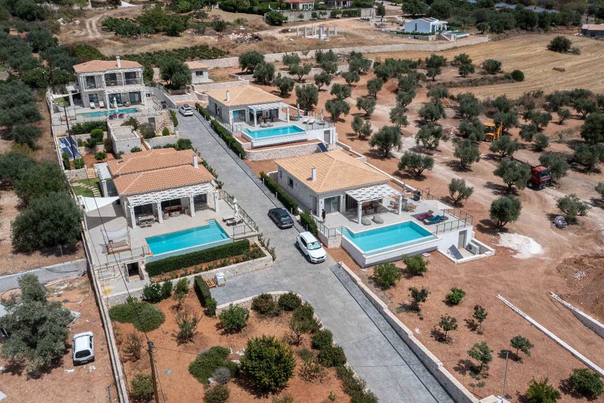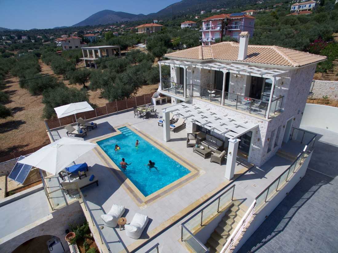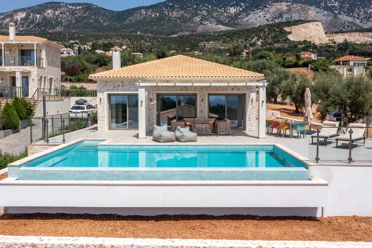 These four modern and lovingly cared for villas are in the area of Pangea in Trapezaki. This is a quiet, peaceful region on the southern tip of Kefalonia amongst the foothills of Mount Ainos and a 3 minute drive to Trapezaki Bay and its golden sandy beach. Hundreds of olive and fruit trees surround the area and there are panoramic views to Mount Ainos and to the sea and the island of Zakynthos.