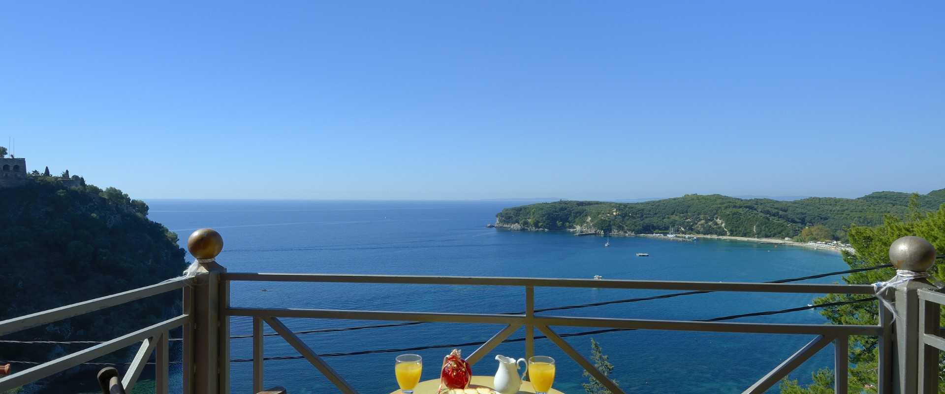 The Palatino's location, high on the headland at the top of Parga's old town, lends stunning views over the castle, Valtos beach and the sea.