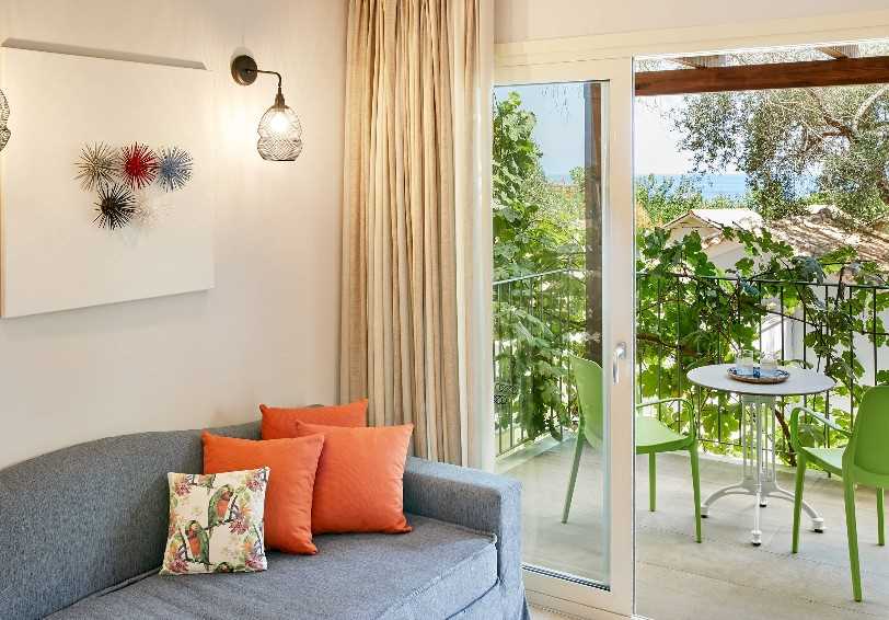 Premium rooms can sleep 2/3 adults plus a child. They are tastefully furnished in a classic style and some can interconnect. Each has a balcony or veranda overlooking the gardens and a few have partial sea views.