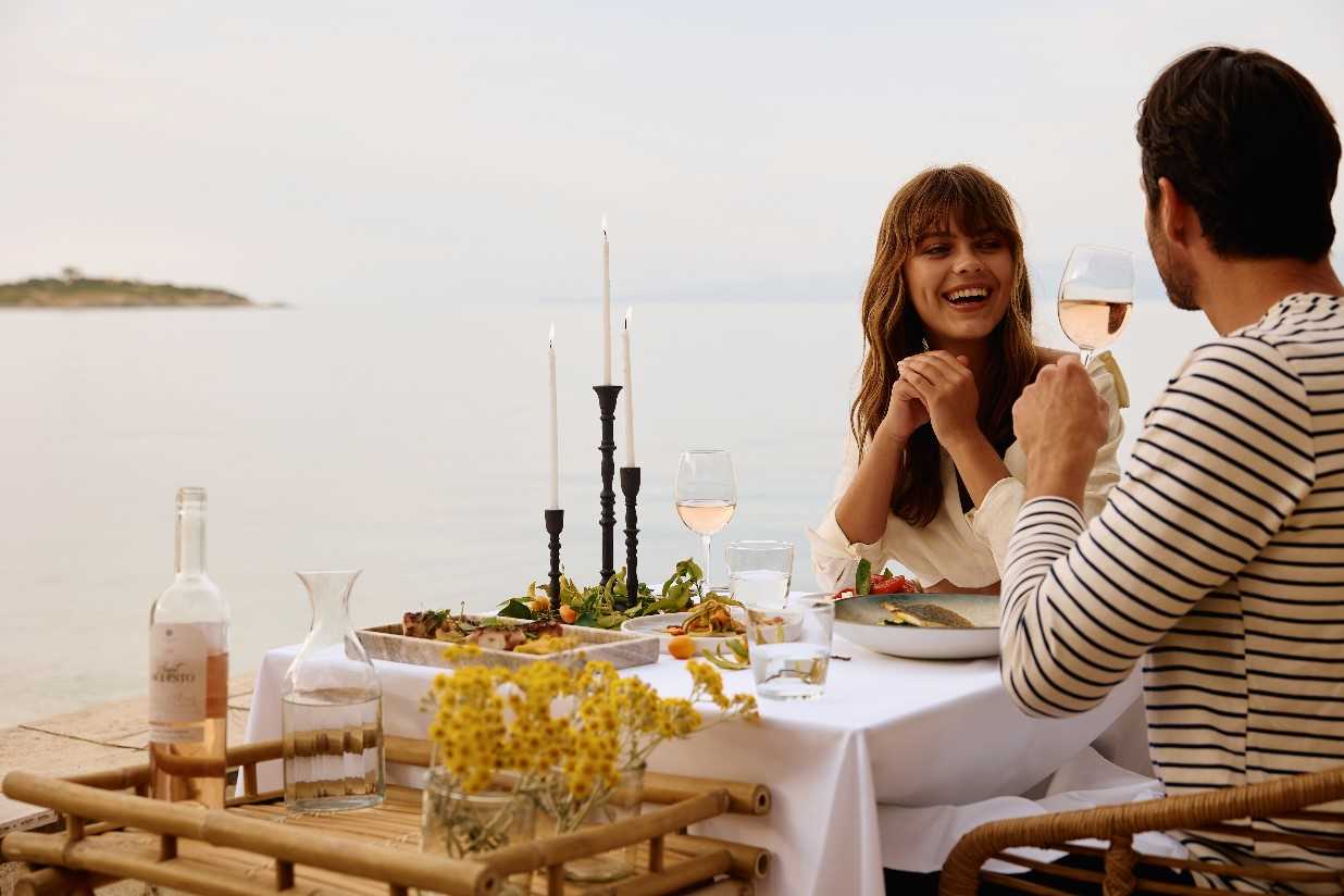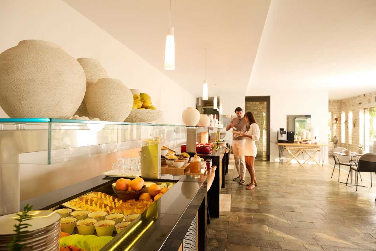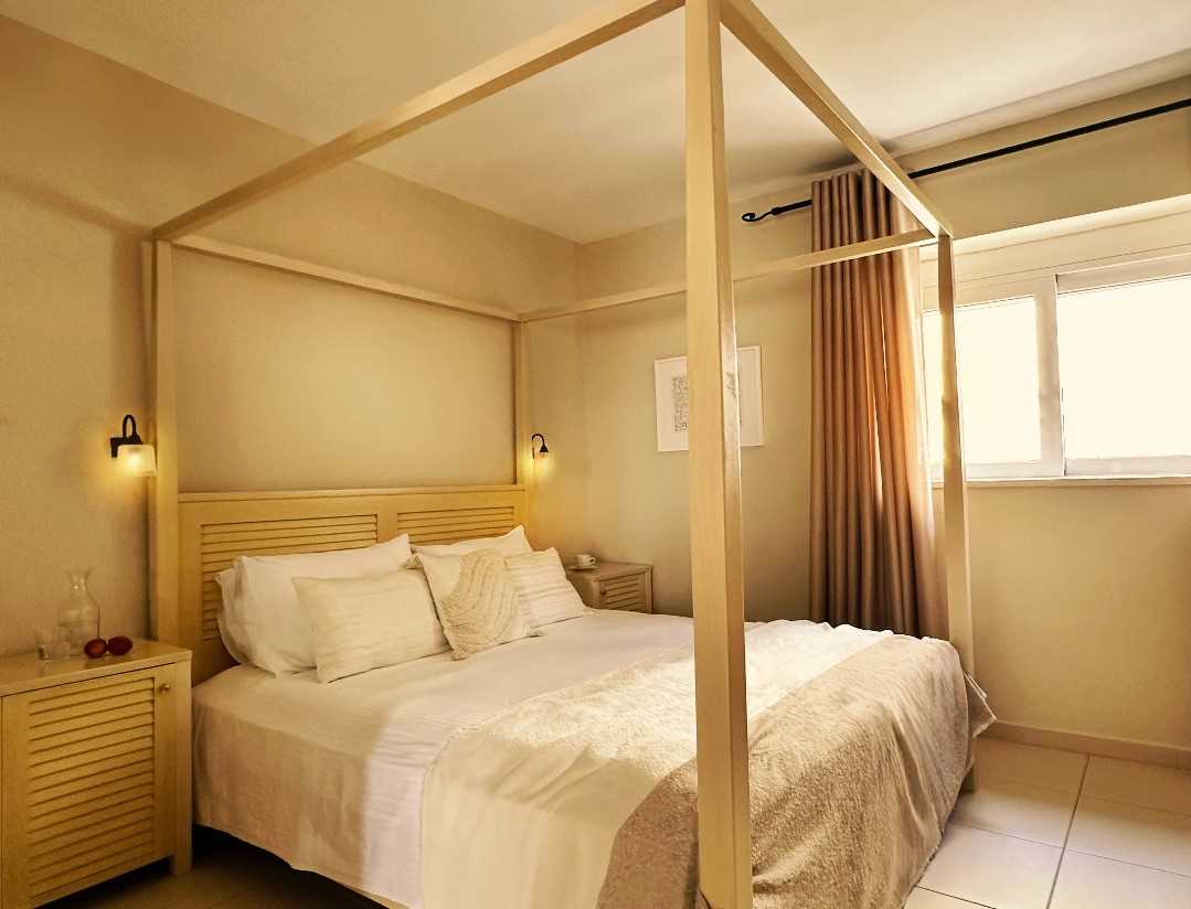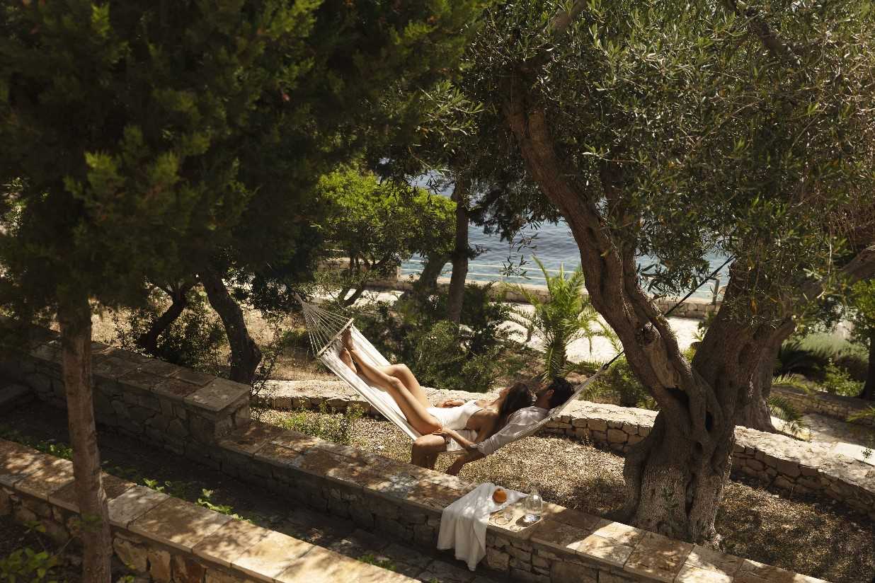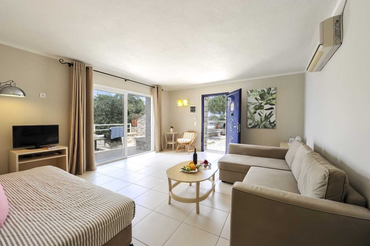 The hotel has some 40 rooms and suites housed in stone terraced units set among olive trees. All are double or twin-bedded and possess air conditioning, WiFi, mini-fridge, TV, hairdryer, room safe, tea-making facilities, shower room and veranda, most with some form of sea view.