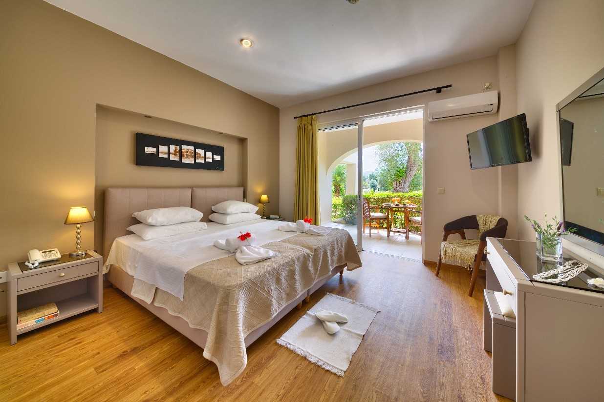 With an area of up to 30 sqm, these rooms can accommodate 2 persons and have either a double or two single beds, bathroom with shower and a private terrace/balcony with a side view to the gardens. Rooms are air conditioned and have a minibar, safe deposit box, direct dial telephone, radio, cable TV and hairdryer.