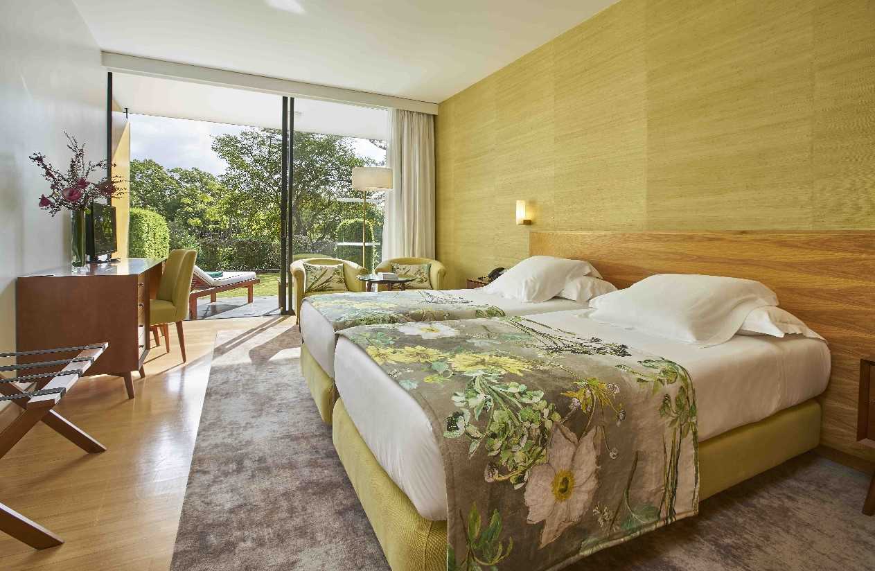 Standard room with air-conditioning, twin beds, bathroom (bath, shower and hairdryer), cable TV, telephone, complimentary WiFi internet connection, minibar, safe deposit box, tea and coffee making facilities and terrace with garden views and two sun loungers.