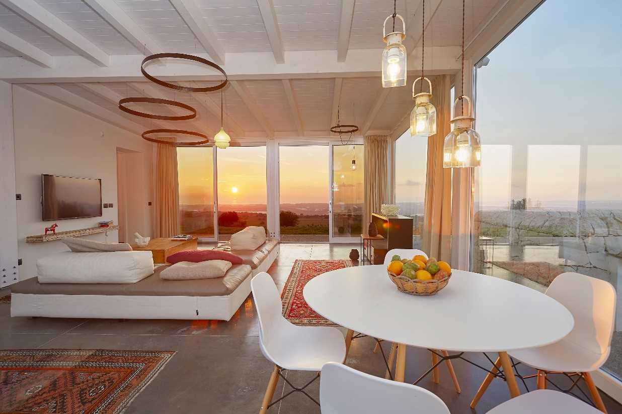 Set on a hill in the south eastern region of Ragusa, a few metres from the magical castle of Donnafugata, the views from this elegant villa are spectacular: overlooking the castle and the sprawling Sicilian countryside with a glimpse of the Mediterranean sea in the distance. The house itself is set entirely on one floor with large windows throughout but particularly noticeable in the living rooms with their sweeping vistas viewed from the interior comfortable seating areas and modern kitchen. Each unit has three bright and stylish bedrooms with en-suite facilities and outside there is a gazebo, BBQ area, orchards with aromatic plants and typical herbs, a rectangular infinity pool (Villa Bianca Ponente) and a circular infinity pool (Villa Bianca Levante), terraces and designer furniture.