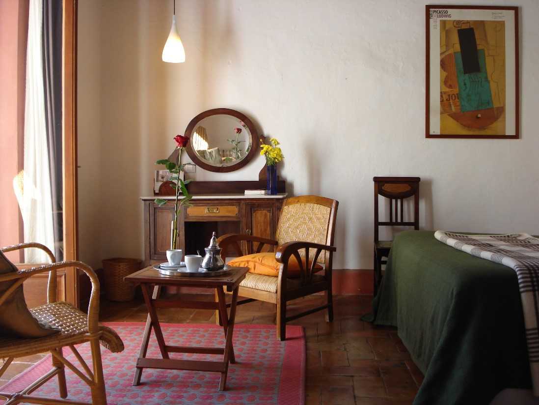 Suite, consisting of one large room, with air-conditioning, double bed, bathroom (shower), hairdryer, living room area with TV, stereo, fireplace and sofa that converts into a double sofa bed suitable for two children, handmade bedspreads and rugs, clay tile flooring and a view of the Vega, the San Pedro church and the neighbouring courtyards.