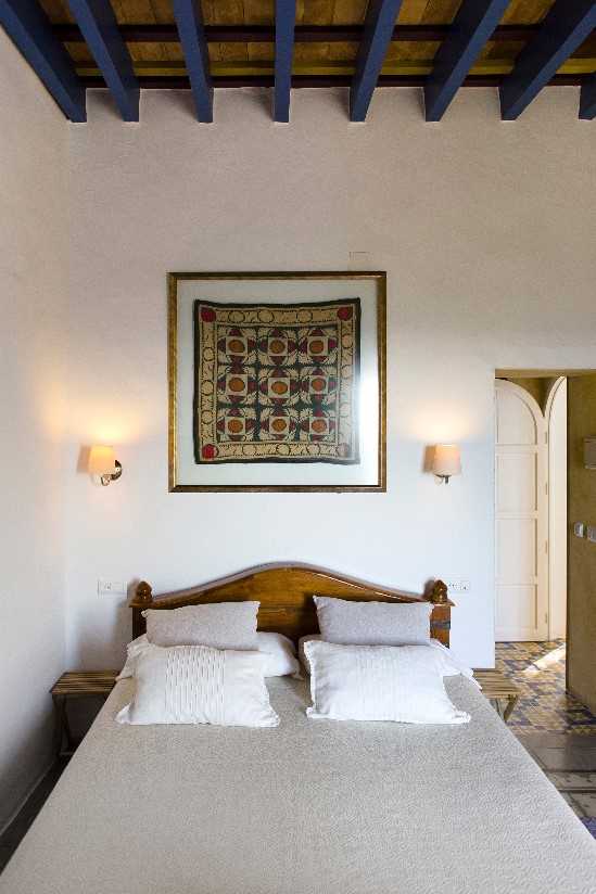 Superior room (Loft), located at the top of the house, with air-conditioning, double bed, bathroom (shower), hairdryer, TV, handmade bedspreads and rugs, clay tile flooring, wooden beams and direct access to the roof terrace with panoramic views.