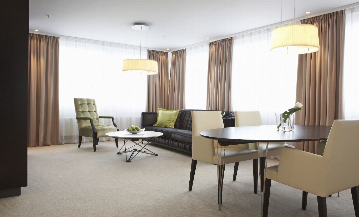 Junior suites have a designated living area (double sofa bed suitable for 1 adult or 2 children) and have a bathroom (bath, separate shower cubicle and hairdryer). The room is equipped with telephone, cable TV, complimentary Wifi, minibar, safe deposit box, tea and coffee making facilities.