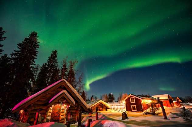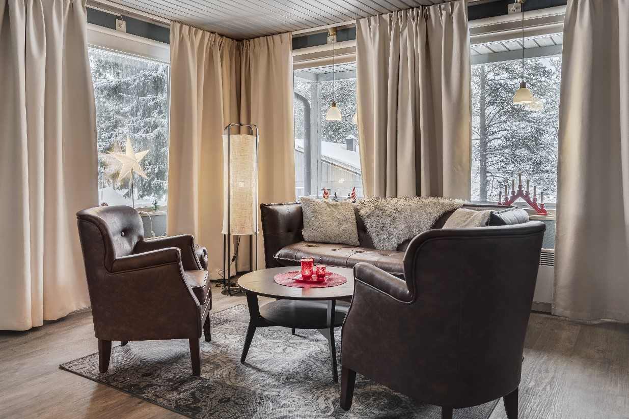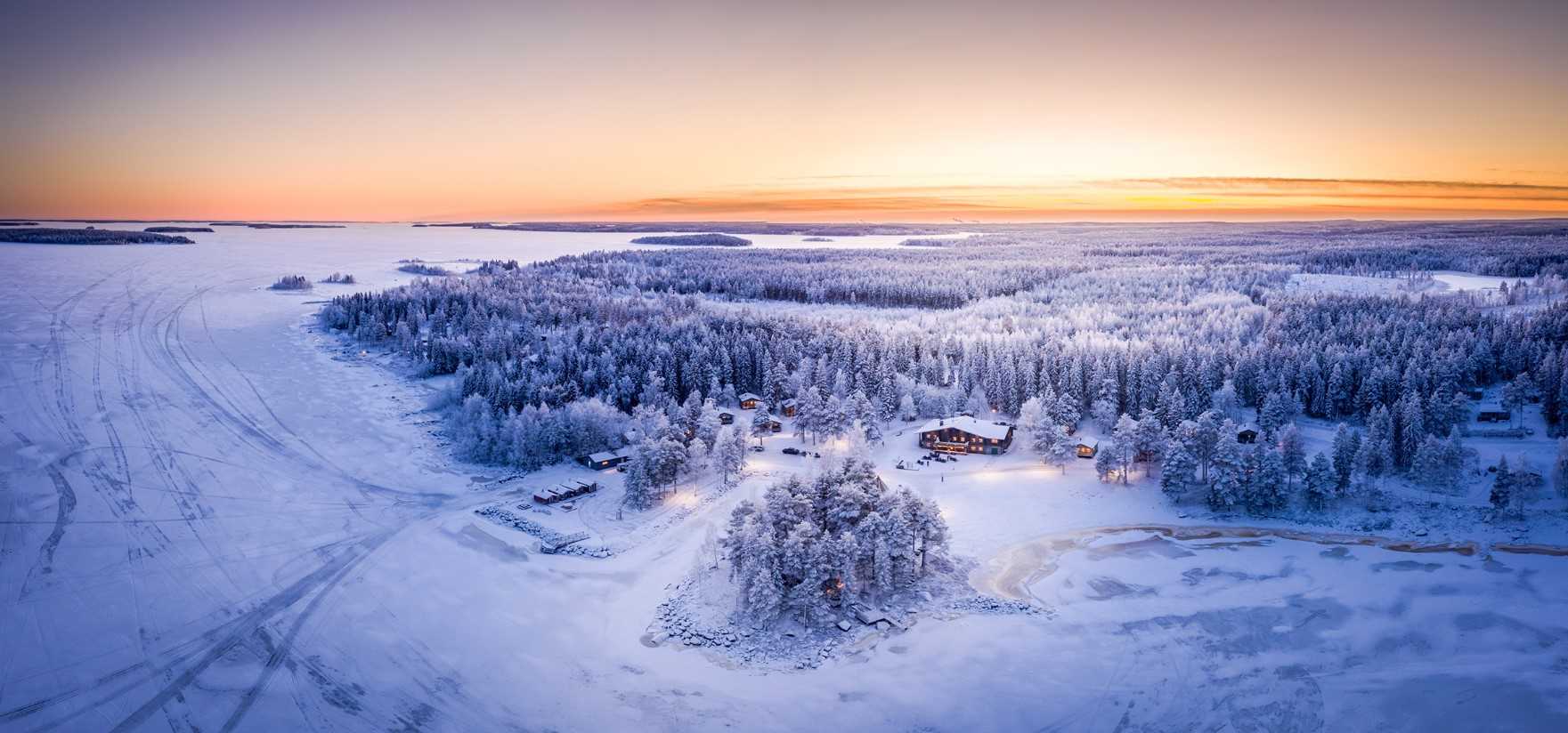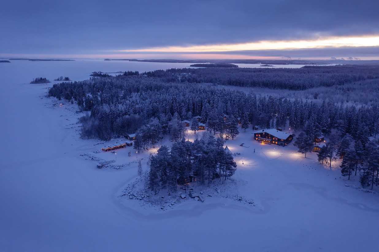 Aerial view of Brandon Lodge during the winter, Brandon Lodge, Swedish Lapland
