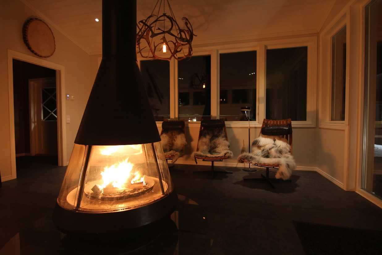 - Lounge with woodturning fireplace adjacent to the guest house