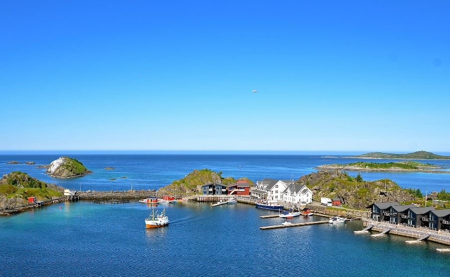 After breakfast, drive south towards the historical village of Nusfjord. The road between Svolvaer and Nusfjord is part of the Lofoten National Tourist Route and travels alongside craggy alpine peaks, glistening white sandy beaches and fishing villages.